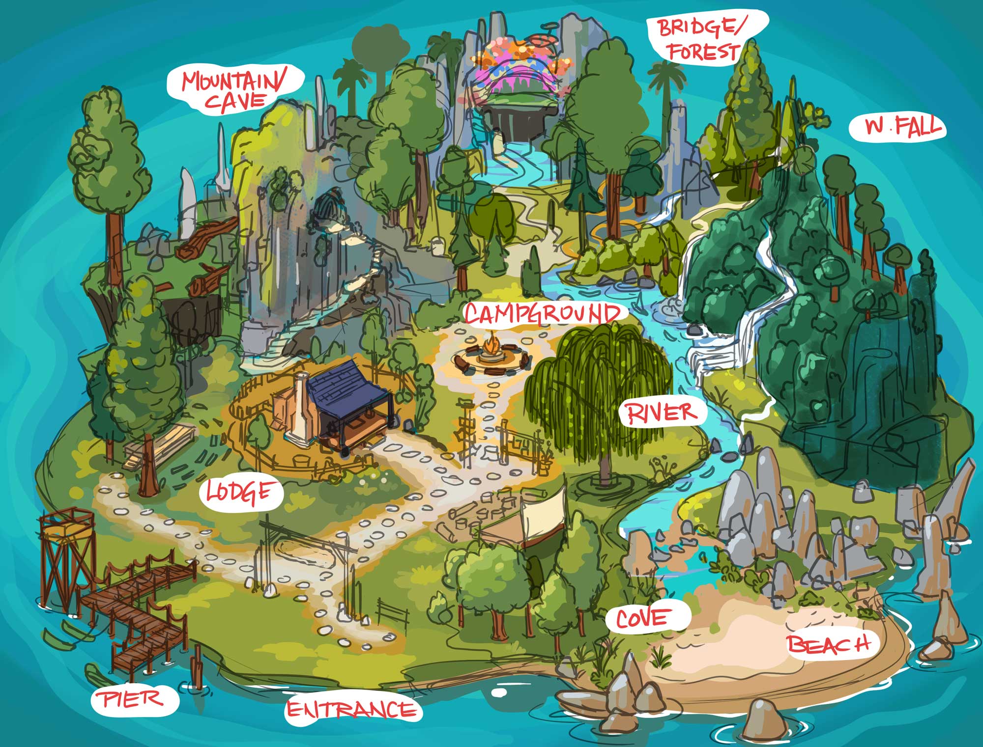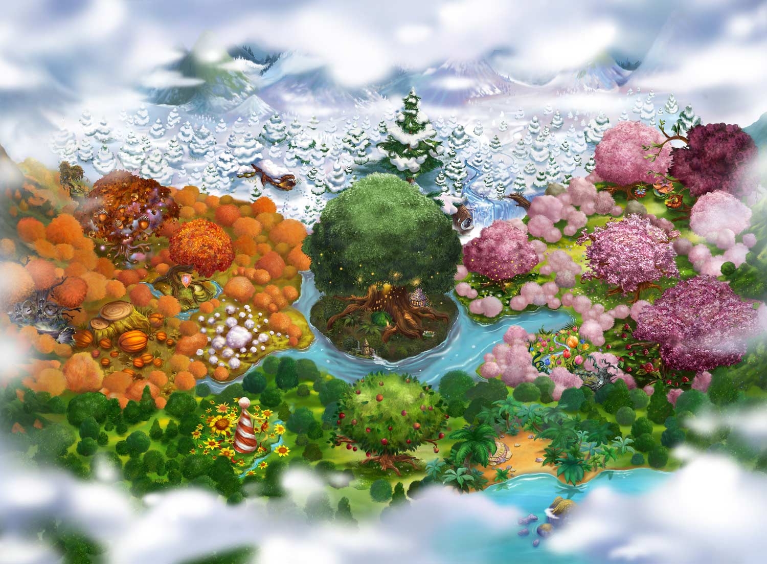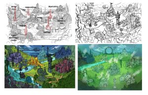 Background Concept Development for World map and scrolling lands to discover games